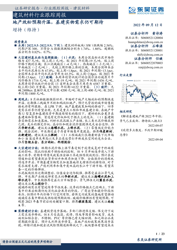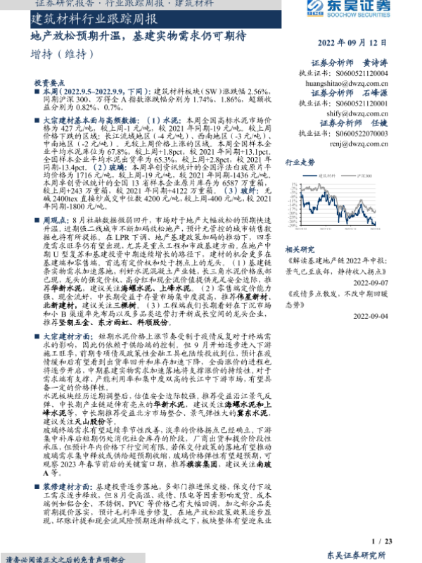 【东吴证券】【20220912】建筑材料行业跟踪周报:地产放松预期升温,基建实物需求仍可期待-23页