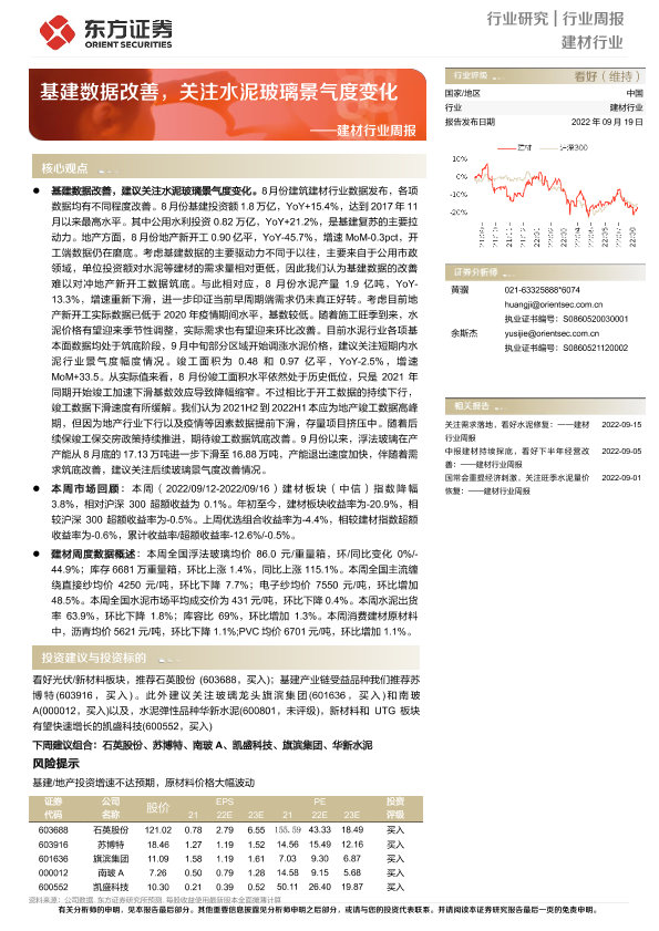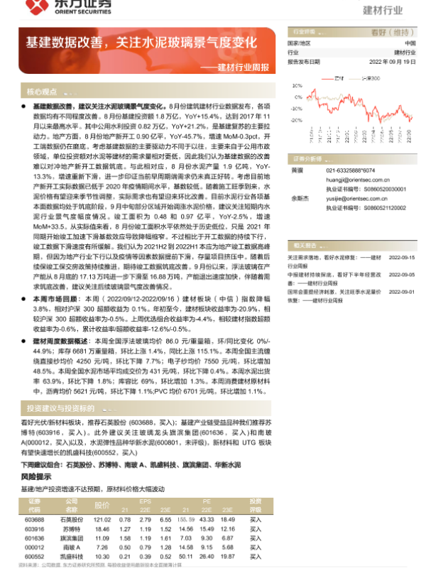 【东方证券】【20220919】建材行业周报:基建数据改善,关注水泥玻璃景气度变化-21页