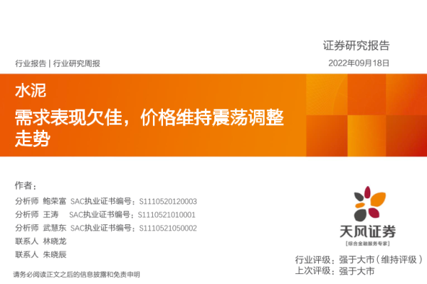 【天风证券】【20220918】水泥行业研究周报:需求表现欠佳,价格维持震荡调整走势-22页