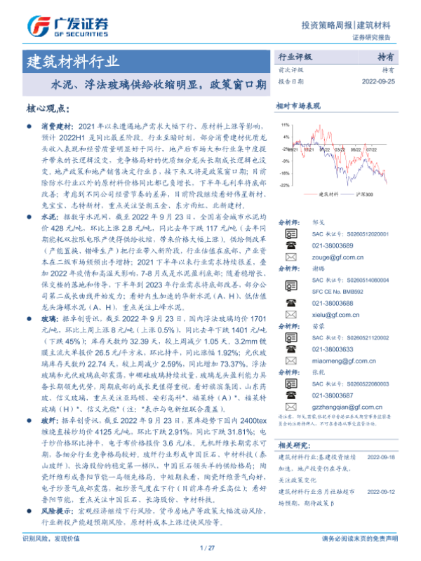 【广发证券】【20220925】建筑材料行业:水泥、浮法玻璃供给收缩明显,政策窗口期-27页