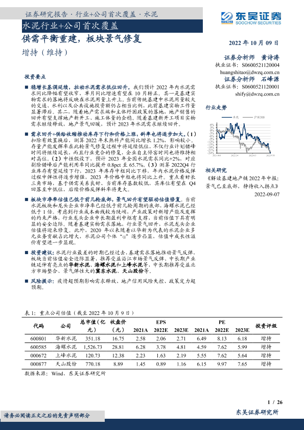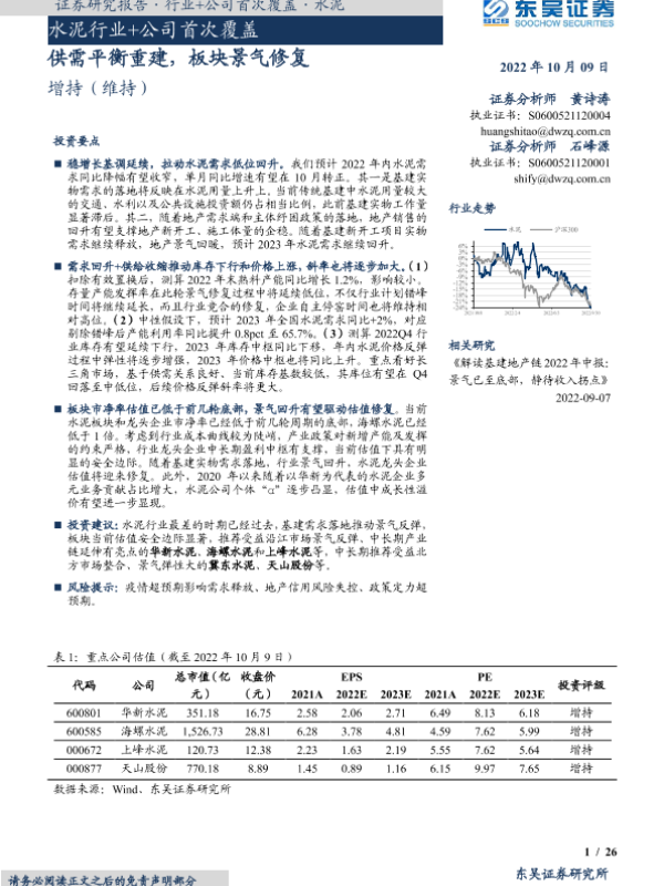 【东吴证券】【20221009】水泥行业+公司首次覆盖:供需平衡重建,板块景气修复-33页
