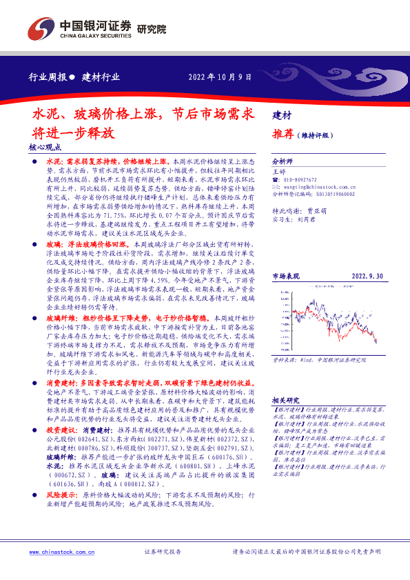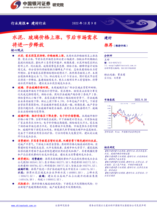 【银河证券】【20221009】建材行业周报:水泥、玻璃价格上涨,节后市场需求将进一步释放-13页