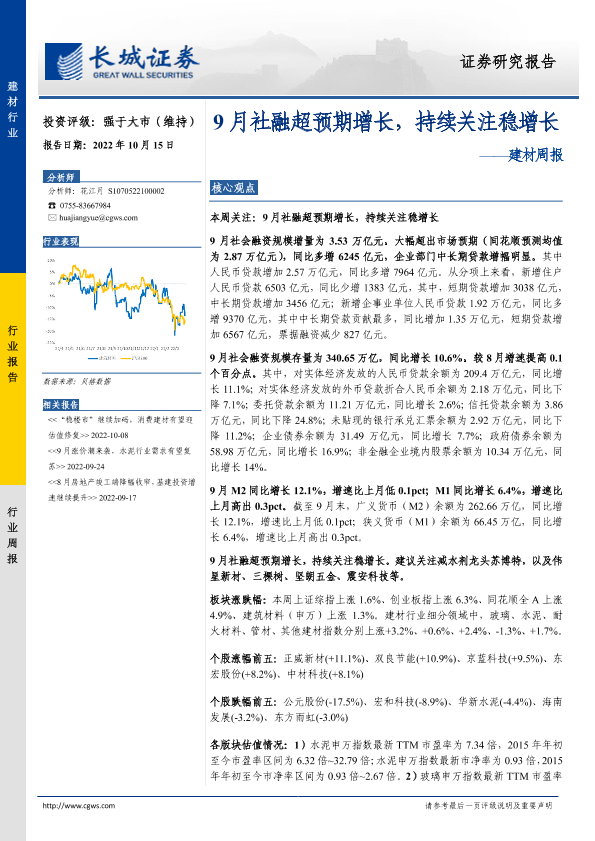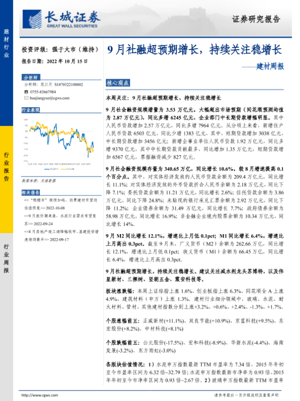 【长城证券】【20221015】9月社融超预期增长,持续关注稳增长-19页