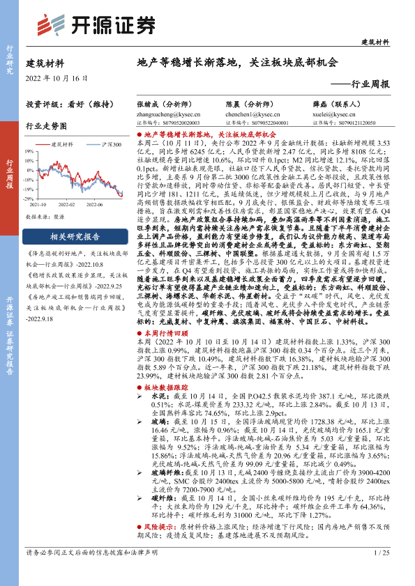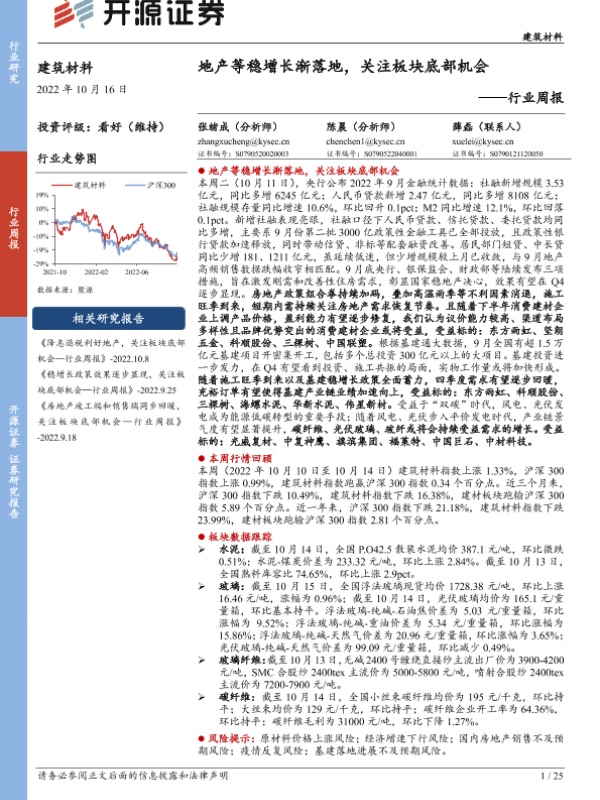【开源证券】【20221016】建筑材料行业周报:地产等稳增长渐落地,关注板块底部机会-25页