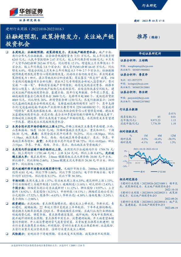 【华创证券】【20221017】建材行业周报:社融超预期,政策持续发力,关注地产链投资机会-18页