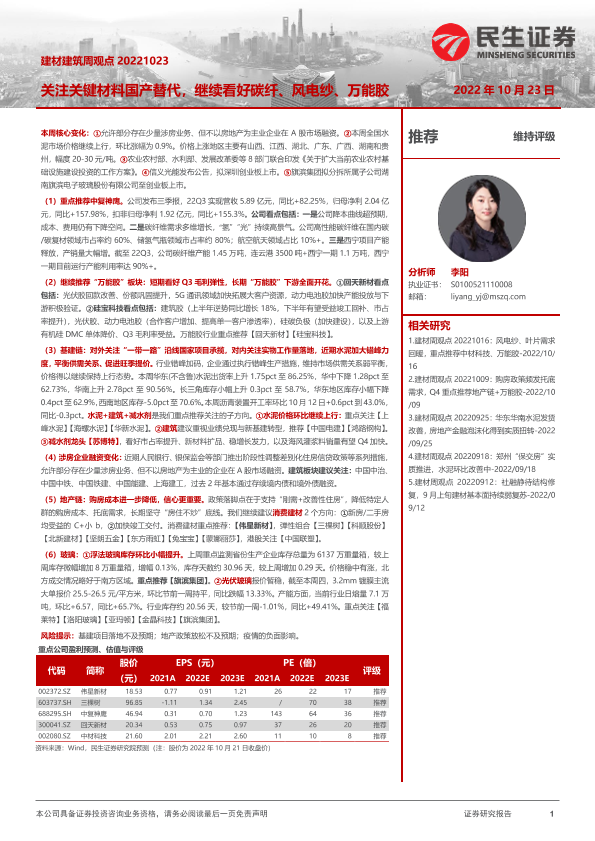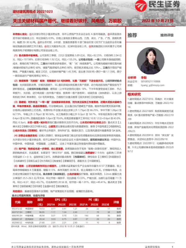 【民生证券】【20221024】建材建筑周观点:关注关键材料国产替代-21页