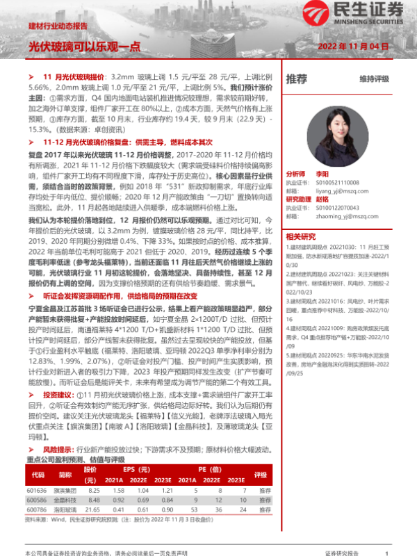 【民生证券】【20221104】建材行业动态报告:光伏玻璃可以乐观一点-10页