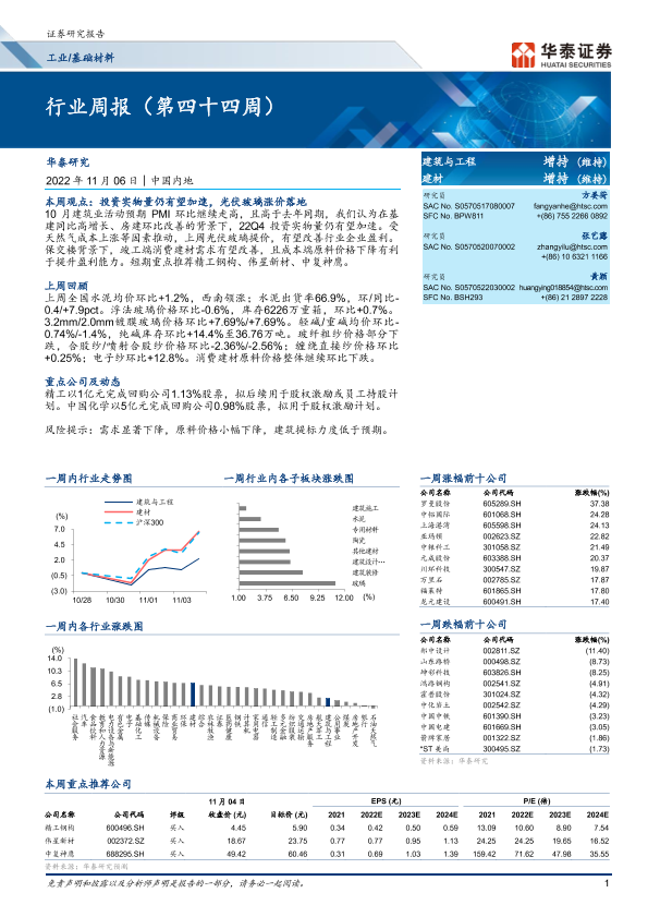 【华泰证券】【20221106】工业基础材料行业周报(第四十四周)-16页