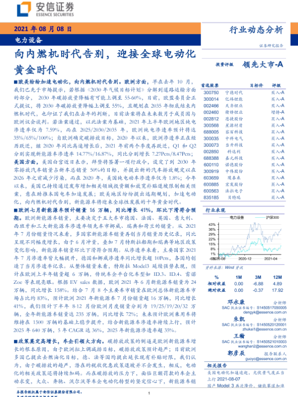 【安信证券】【20210808】电力设备行业:向内燃机时代告别,迎接全球电动化黄金时代-23页