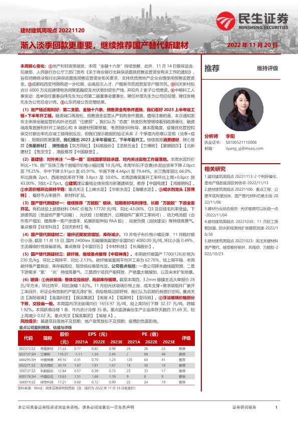 【民生证券】【20221120】建材建筑周观点:渐入淡季回款更重要,继续推荐国产替代新建材-21页