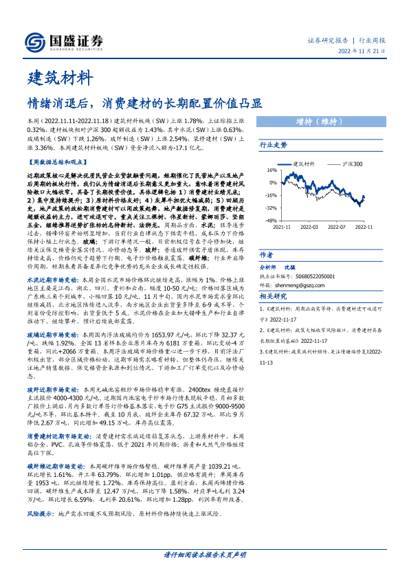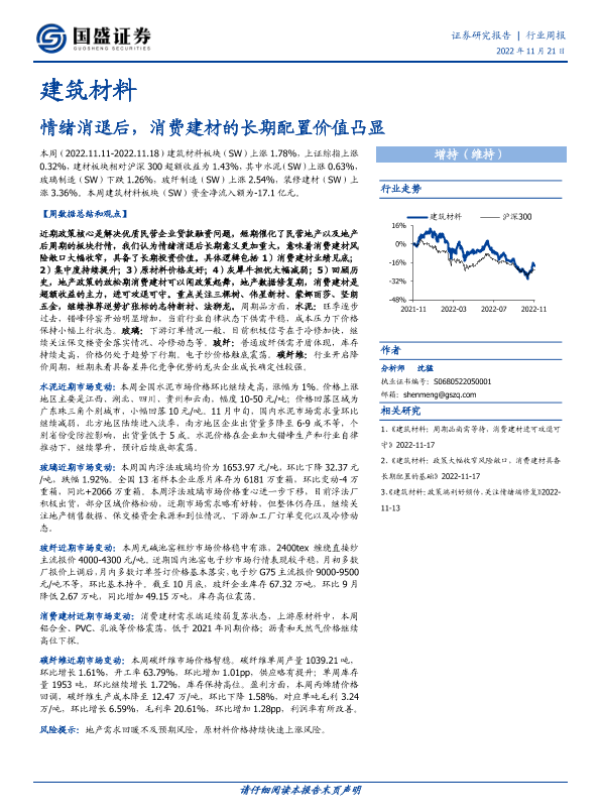 【国盛证券】【20221121】建筑材料行业周报:情绪消退后,消费建材的长期配置价值凸显-16页
