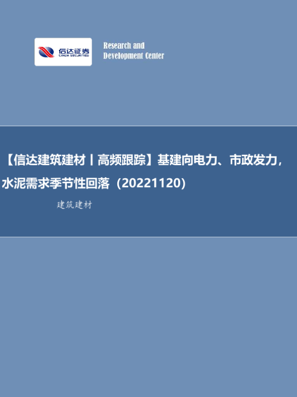 【信达证券】【20221120】基建向电力、市政发力,水泥需求季节性回落-31页