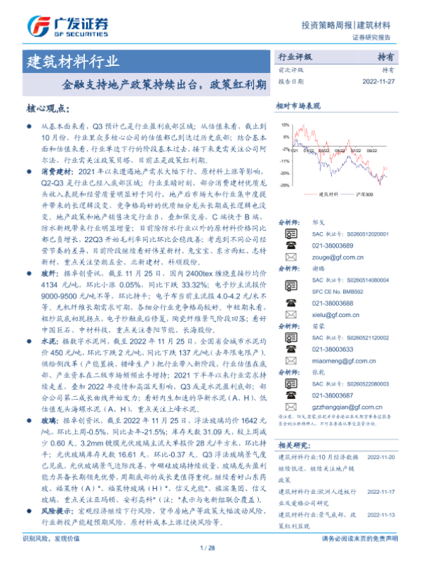 【广发证券】【20221127】建筑材料行业:金融支持地产政策持续出台,政策红利期-28页
