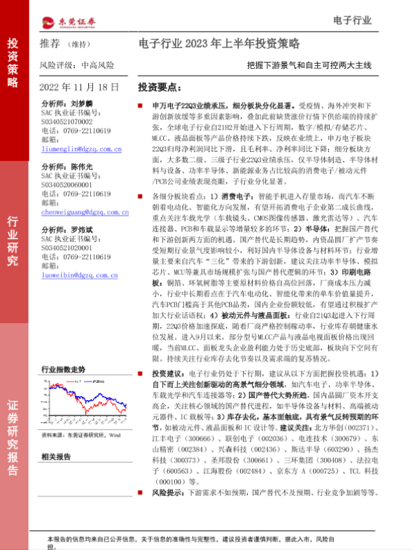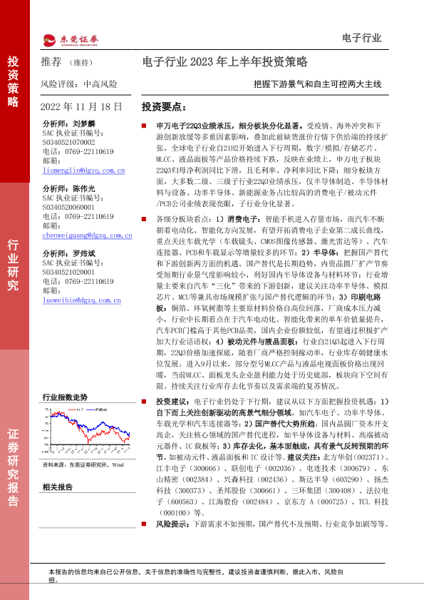 【东莞证券】【20221118】电子行业2023年上半年投资策略:把握下游景气和自主可控两大主线-63页