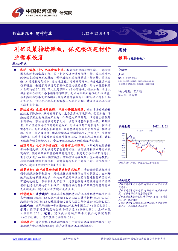 【银河证券】【20221204】建材行业周报:利好政策持续释放,保交楼促建材行业需求恢复-16页