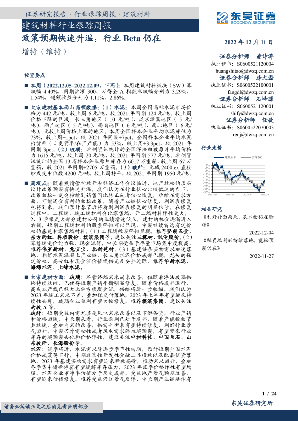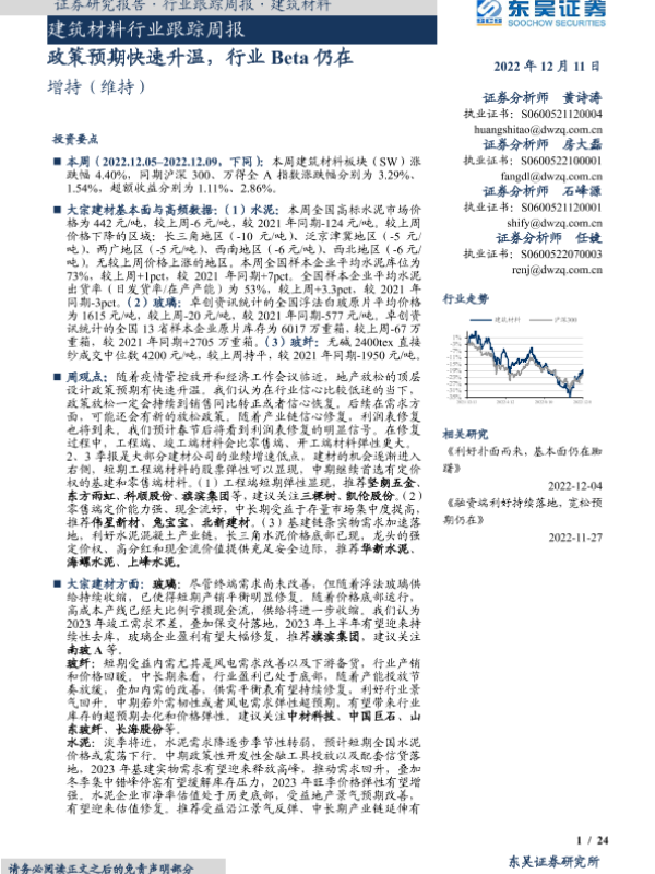 【东吴证券】【20221211】建筑材料行业跟踪周报:政策预期快速升温,行业Beta仍在-24页