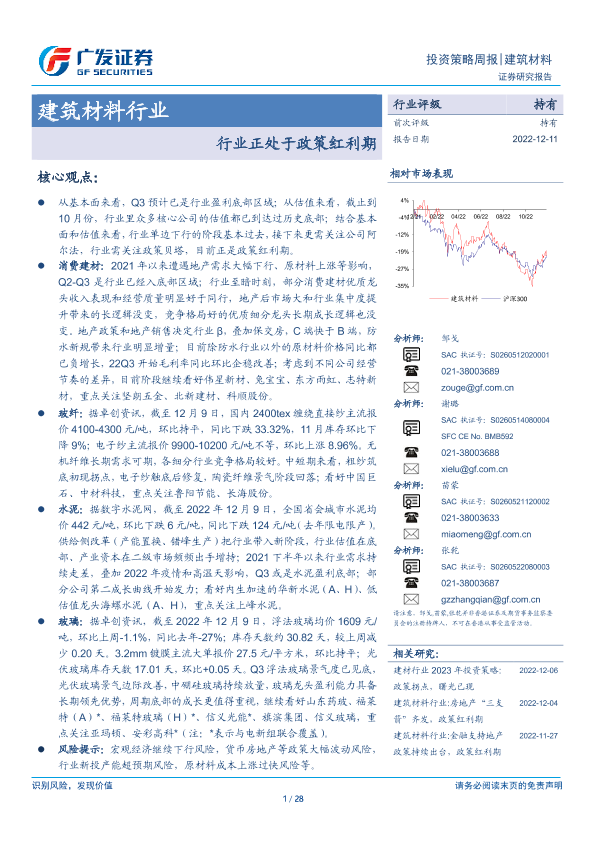 【广发证券】【20221211】建筑材料行业:行业正处于政策红利期-28页