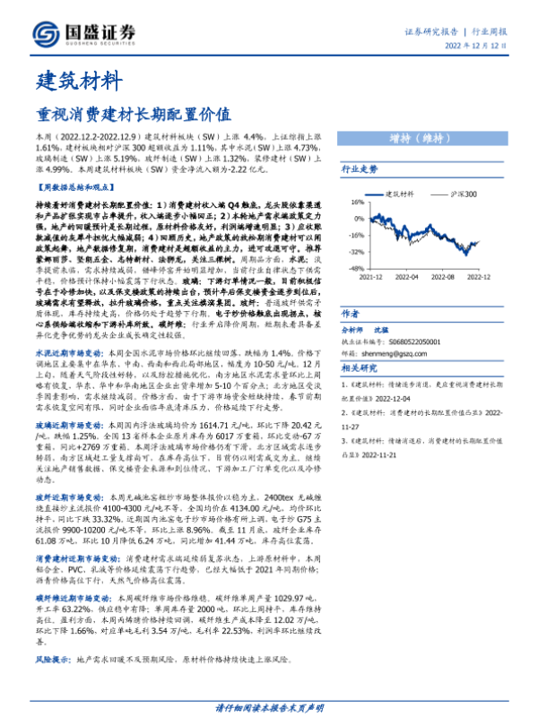 【国盛证券】【20221212】建筑材料行业周报:重视消费建材长期配置价值-16页