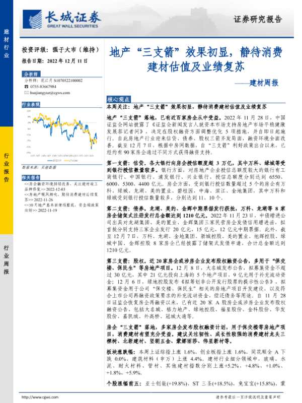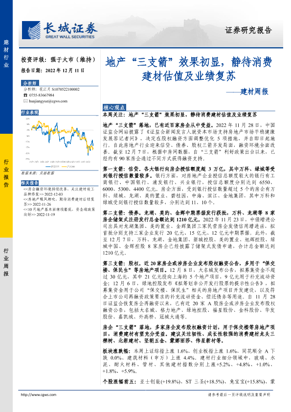 【长城证券】【20221211】建材周报:地产“三支箭”效果初显,静待消费建材估值及业绩复苏-21页