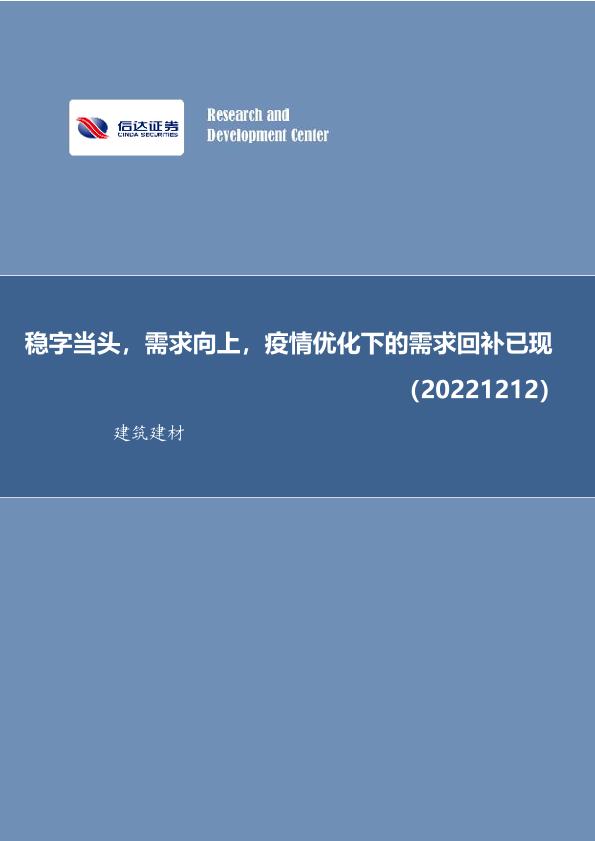 【信达证券】【20221212】建筑建材行业周报:稳字当头,需求向上,疫情优化下的需求回补已现-31页