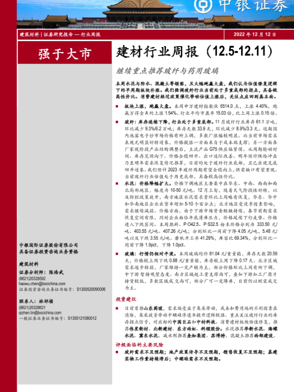 【中银证券】【20221212】建材行业周报:继续重点推荐玻纤与药用玻璃-25页