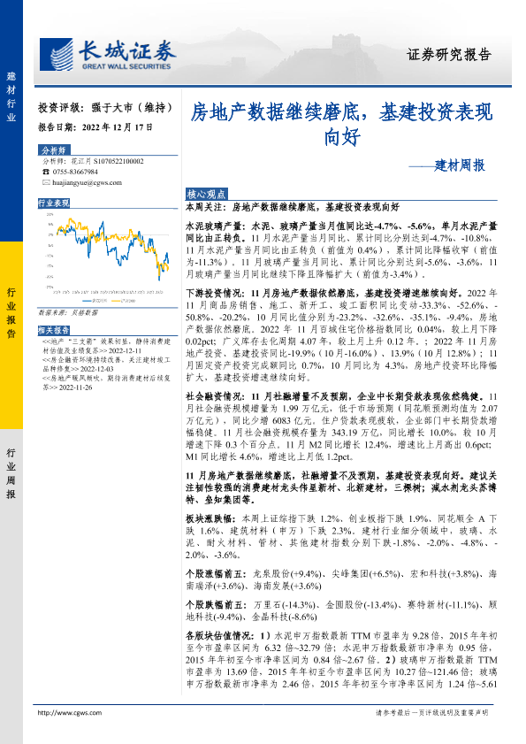 【长城证券】【20221217】建材周报:房地产数据继续磨底,基建投资表现向好-24页