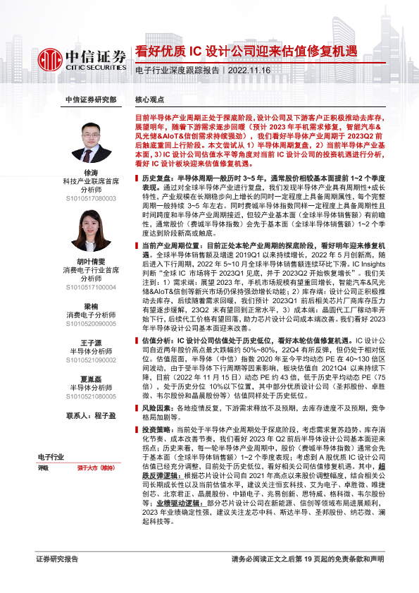 【中信证券】【20221116】电子行业深度跟踪报告:看好优质IC设计公司迎来估值修复机遇-20页