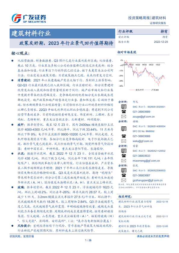 【广发证券】【20221225】建筑材料行业投资策略周报:政策友好期,2023年行业景气回升值得期待-28页