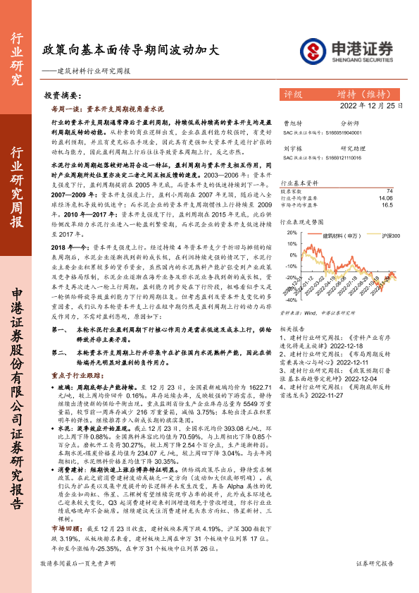 【申港证券】【20221225】建筑材料行业研究周报:政策向基本面传导期间波动加大-17页