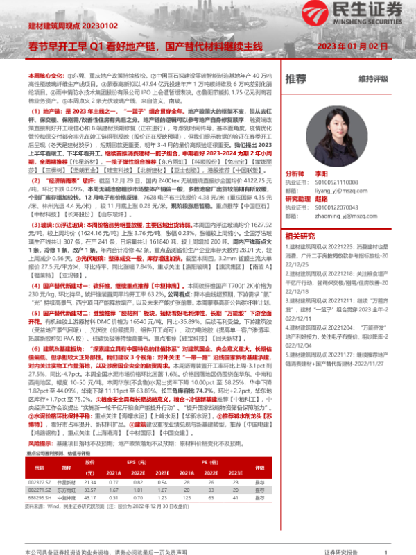 【民生证券】【20230102】建材建筑周观点:春节早开工早Q1看好地产链,国产替代材料继续主线-26页