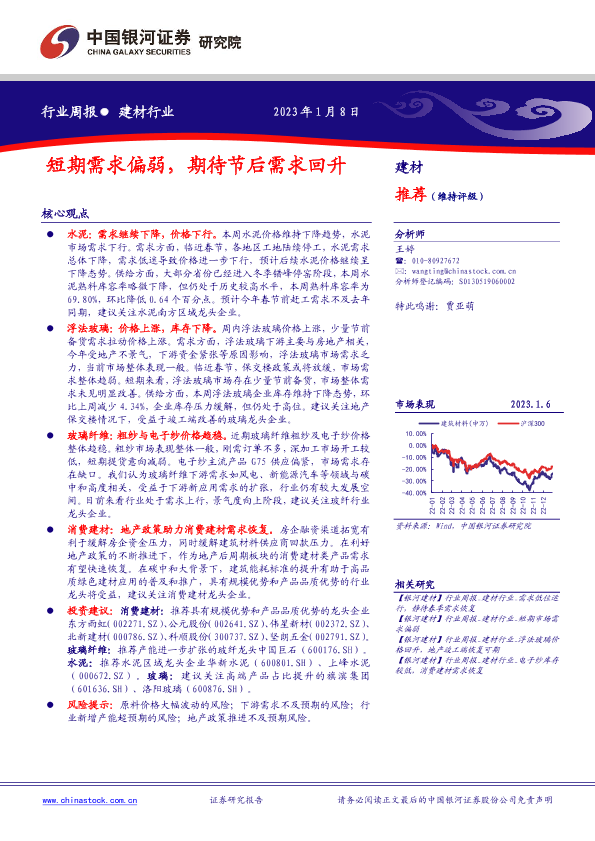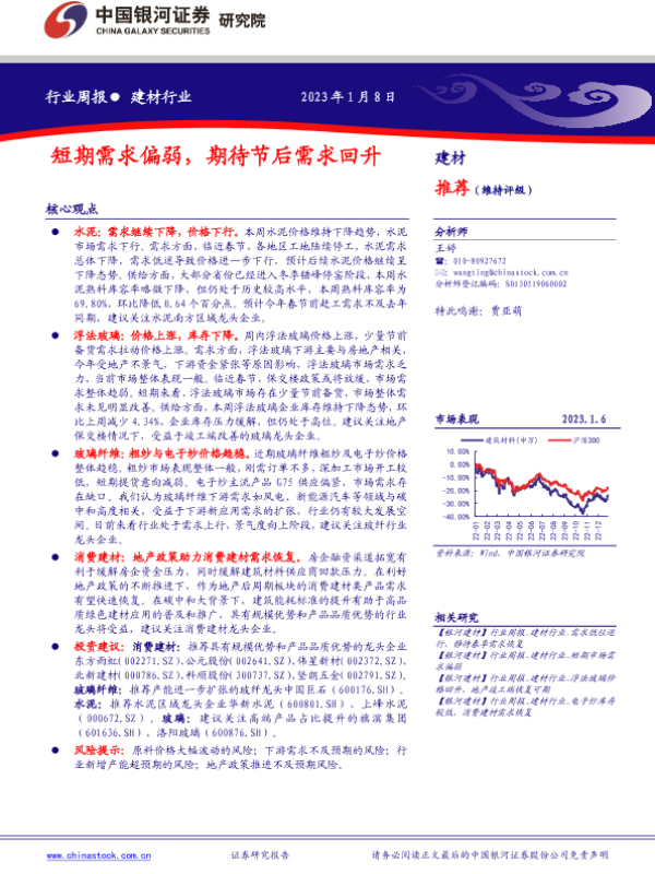 【银河证券】【20230108】建材行业周报:短期需求偏弱,期待节后需求回升-12页