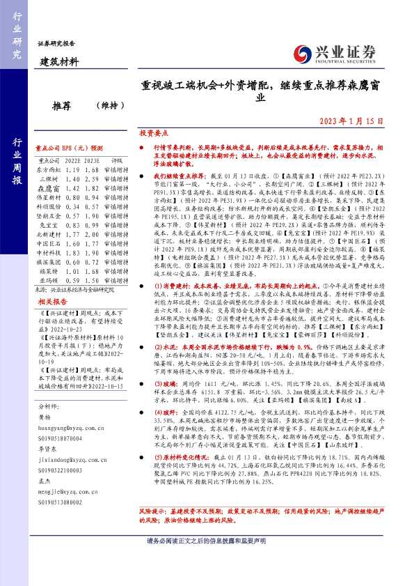 【兴业证券】【20230115】重视竣工端机会+外资增配,继续重点推荐森鹰窗业-21页