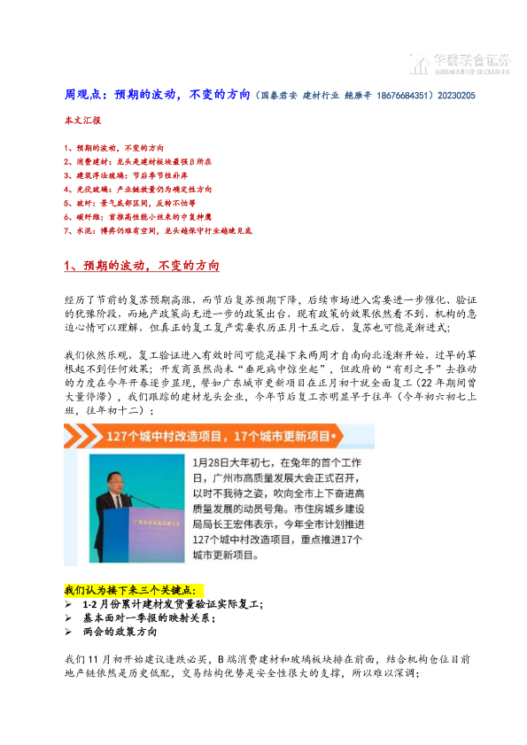 【国泰君安证券】【20230205】建材行业周观点:预期的波动,不变的方向-16页
