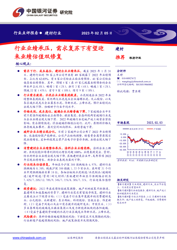 【银河证券】【20230205】行业业绩承压,需求复苏下有望迎来业绩估值双修复-10页