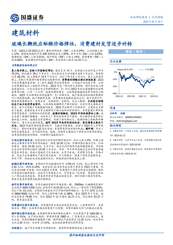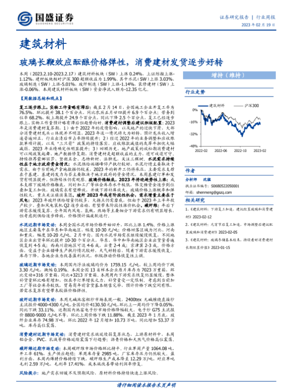 【国盛证券】【20230219】建筑材料行业周报:玻璃长鞭效应酝酿价格弹性,消费建材发货逐步好转-16页