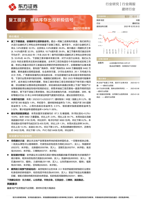 【东方证券】【20230220】建材行业周报:复工提速,玻璃库存出现积极信号-21页