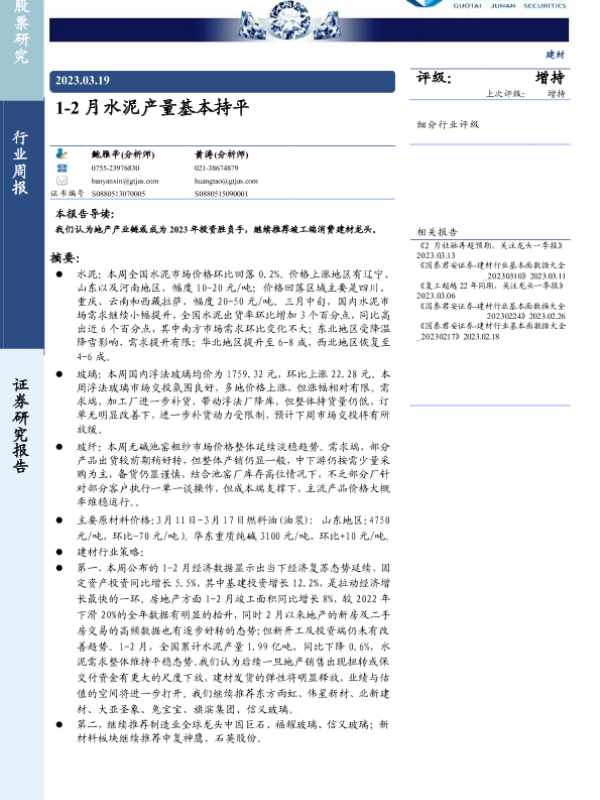 【国泰君安证券】【20230319】1-2月水泥产量基本持平-23页