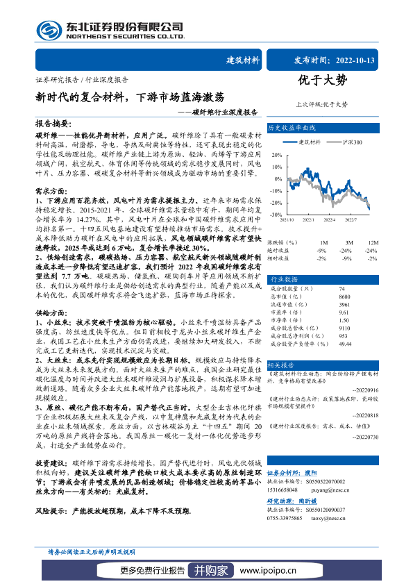 【东北证券】【20221013】新时代的复合材料,下游市场蓝海激荡——碳纤维行业深度报告-40页