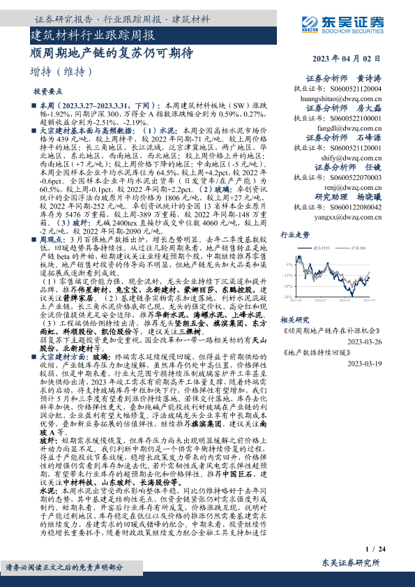 【东吴证券】【20230402】建筑材料行业跟踪周报:顺周期地产链的复苏仍可期待-24页
