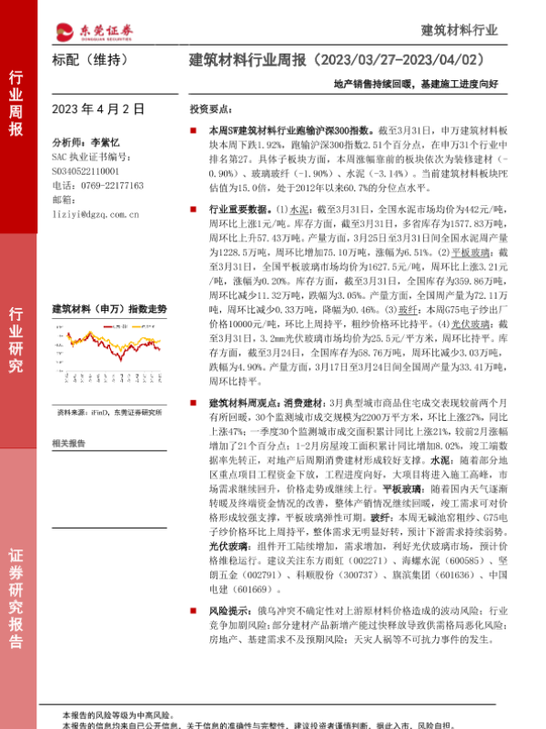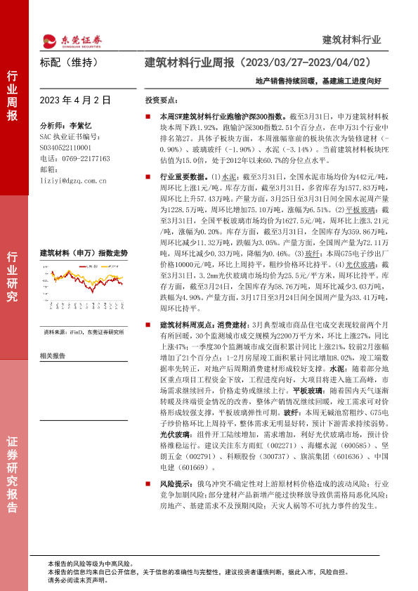 【东莞证券】【20230402】建筑材料行业周报:地产销售持续回暖,基建施工进度向好-16页