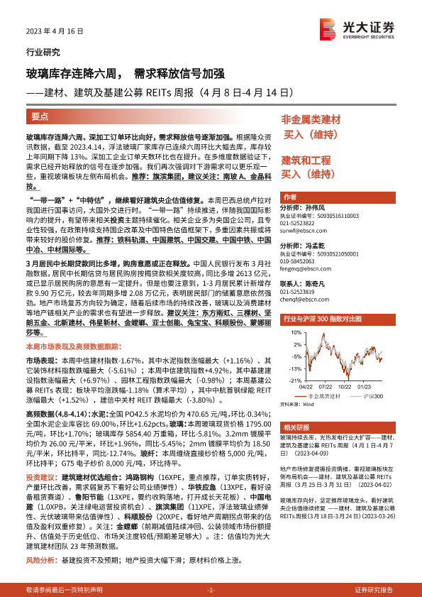 【光大证券】【20230416】建材、建筑及基建公募REITs周报:玻璃库存连降六周,需求释放信号加强-19页