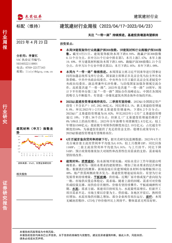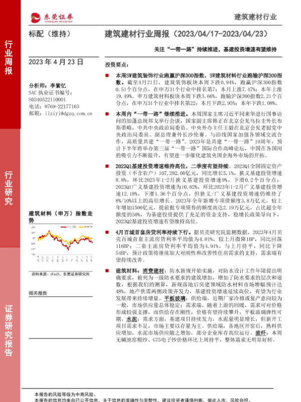 【东莞证券】【20230423】建筑建材行业周报:关注“一带一路”持续推进,基建投资增速有望维持-16页