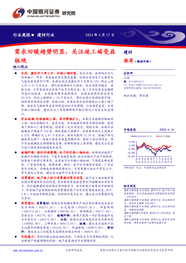 【银河证券】【20230417】建材行业周报:需求回暖趋势明显,关注竣工端受益板块-12页