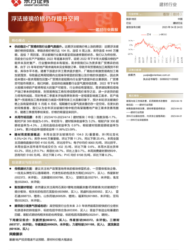 【东方证券】【20230424】浮法玻璃价格仍存提升空间-20页