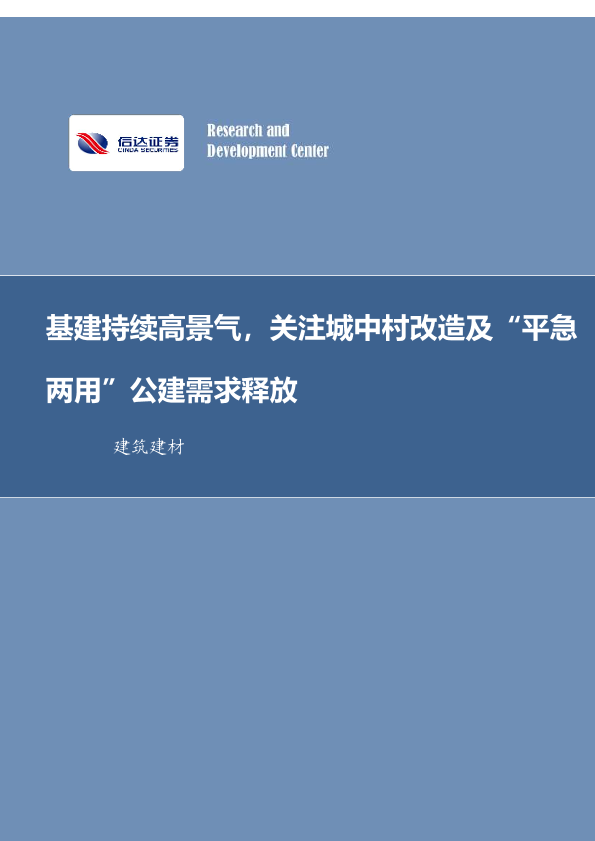 【信达证券】【20230503】建筑建材行业周报:基建持续高景气,关注城中村改造及“平急两用”公建需求释放-31页
