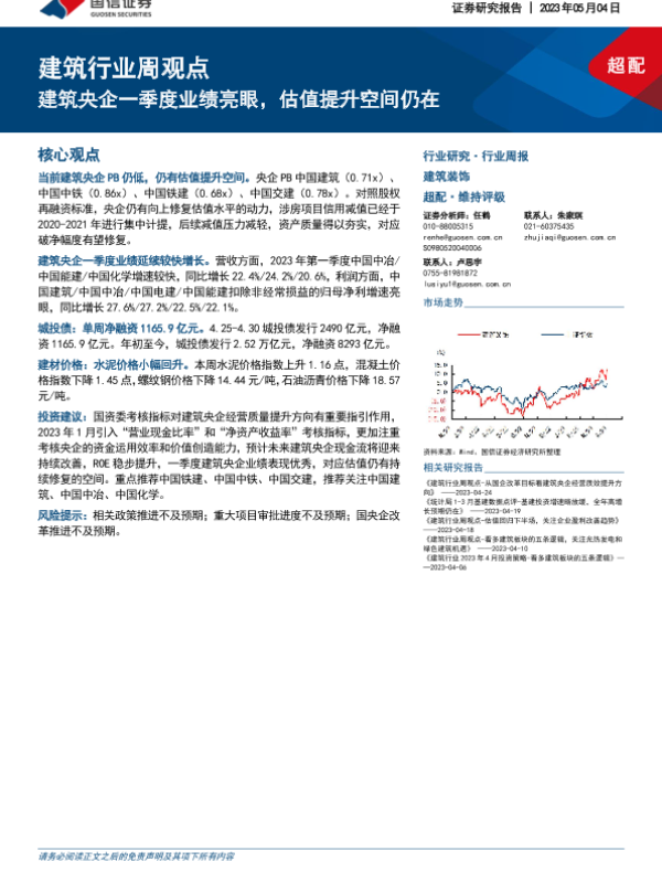 【国信证券】【20230504】建筑行业周观点:建筑央企一季度业绩亮眼,估值提升空间仍在-11页