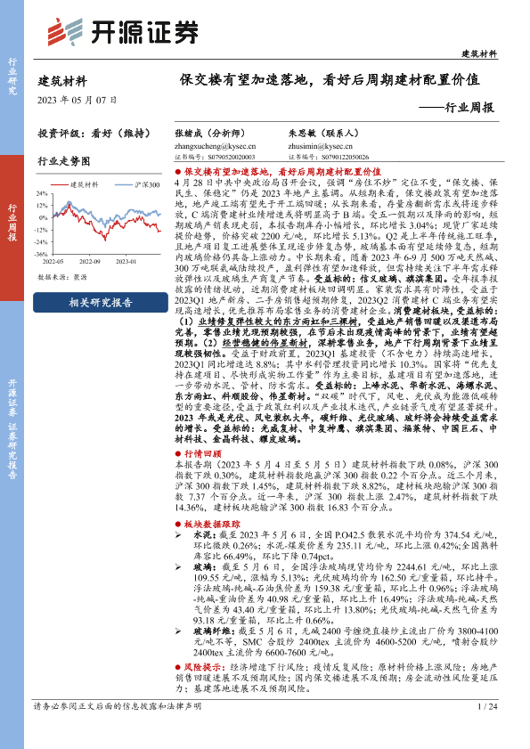 【开源证券】【20230507】建筑材料行业周报:保交楼有望加速落地,看好后周期建材配置价值-24页
