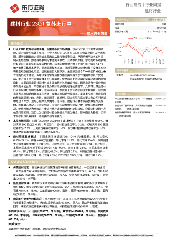 【东方证券】【20230511】建材行业23Q1复苏进行中-20页