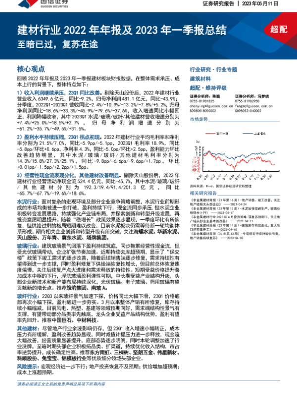 【国信证券】【20230511】建材行业2022年年报及2023年一季报总结-41页