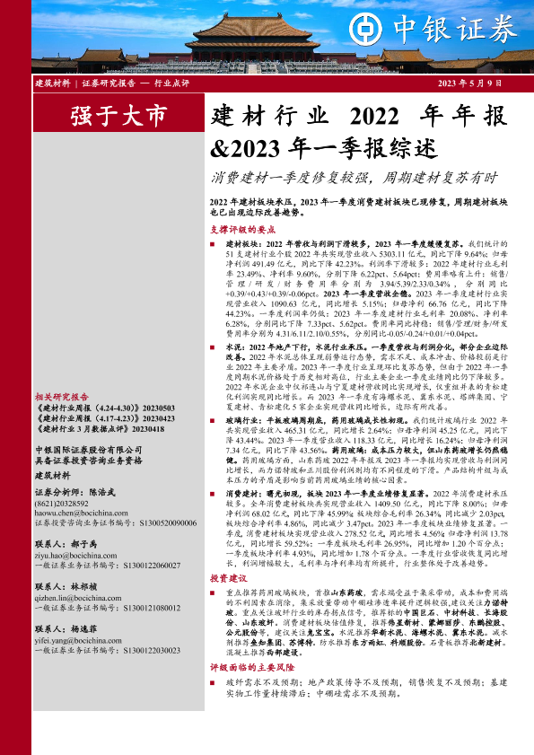 【中银证券】【20230509】建材行业2022年年报&2023年一季报综述-27页